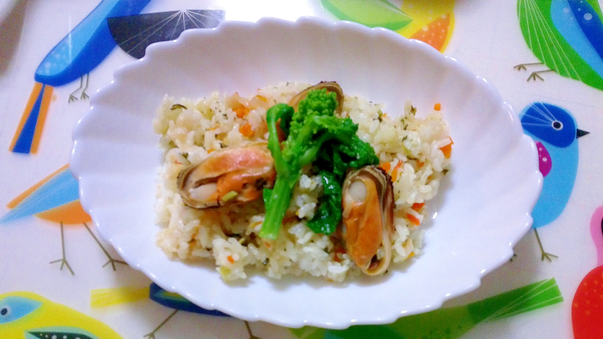 菜の花とムール貝のピラフ レシピ 作り方 By Pinkishsky 楽天レシピ